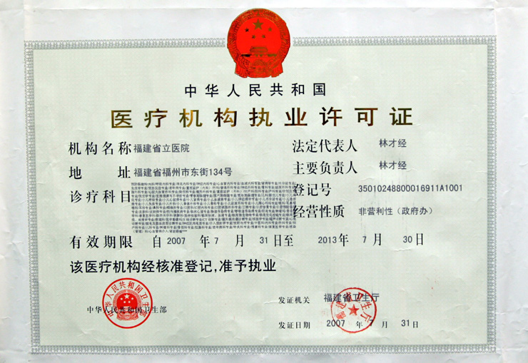福建省立医院执业许可证
