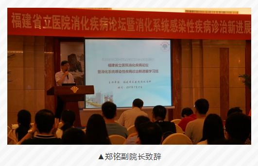 8月18日,北京协和医院-福建省立医院消化疾病论坛暨消化系统感染性疾病诊治新进展学习班在我院顺利举行。本次论坛邀请了多名省内外知名消化病专家参与研讨,100余名业界同仁参会。我院郑铭副院长、消化内科主任林志辉主任医师致开幕词。