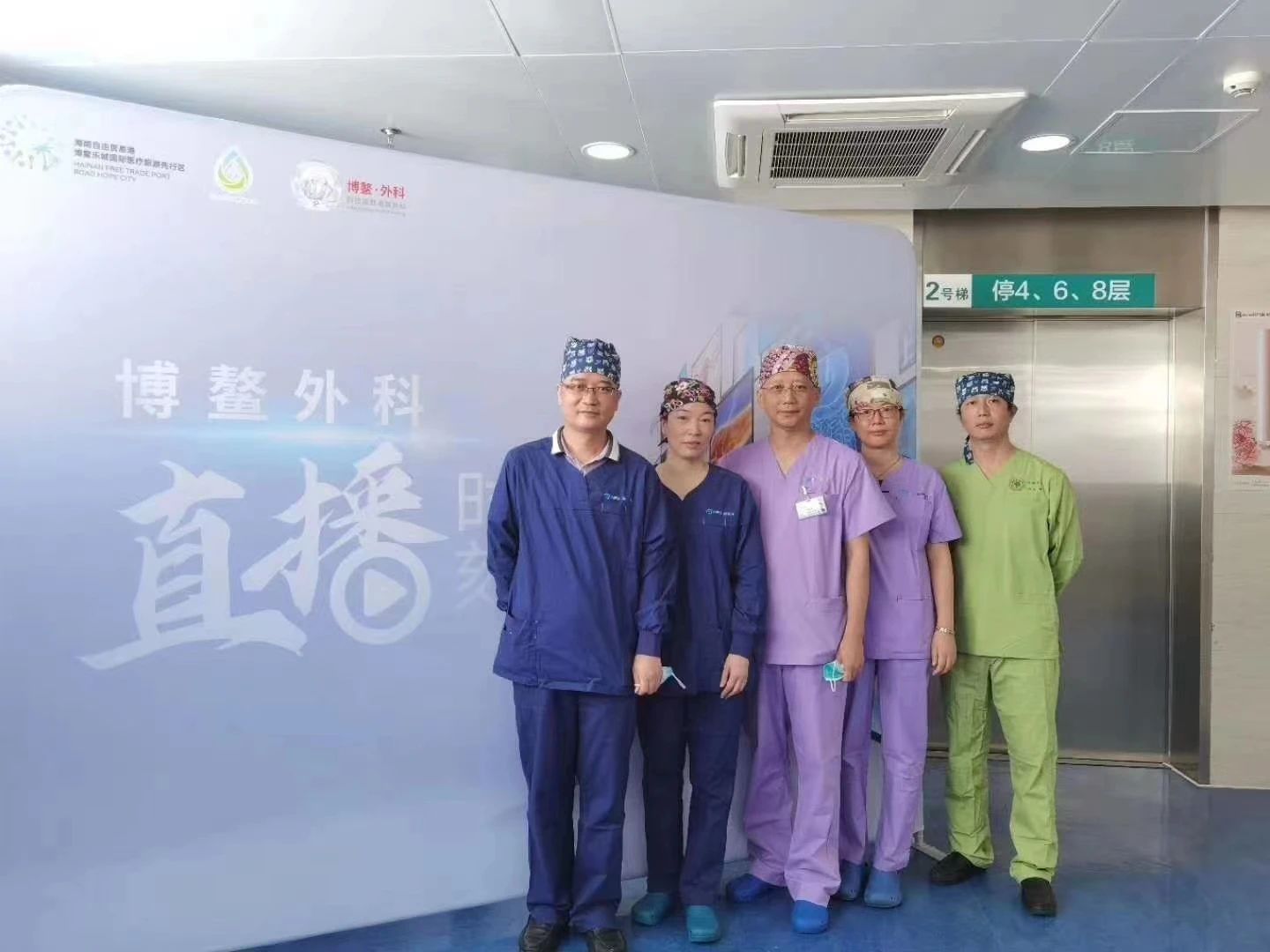 梁玮教授(左三)带领团队参加博鳌外科周演示,“超级微创手术”获得认可