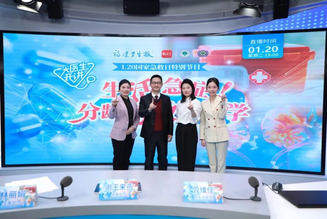 1月20日国家急救日当天,福州大学附属省立医院、福建省急救中心急诊科副主任医师曾维佳、主管护师林丽娟、主管护师谢王来燕做客《大医生开讲·福州大学附属省立医院》直播间,通过现场科普和实操演示拆解全龄层急救技巧,为网友送上实用救命指南。